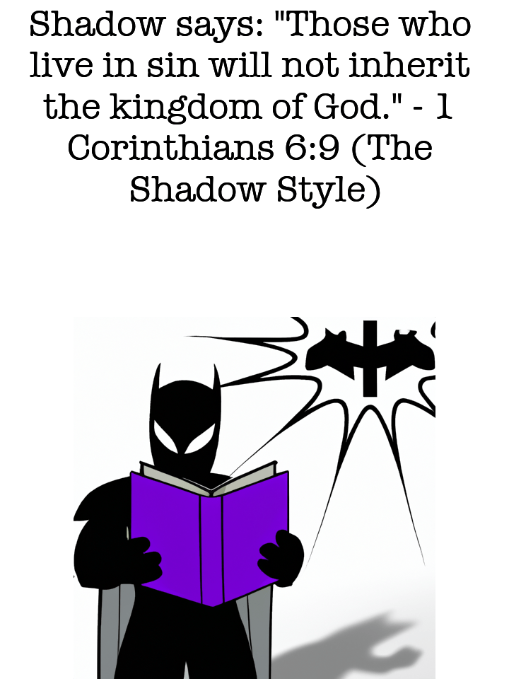 Shadow says: “Those who live in sin will not inherit the kingdom of God.”
