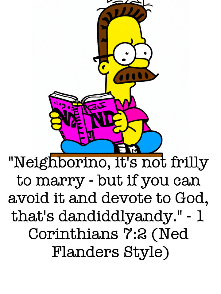“Neighborino, it’s not frilly to marry – but if you can avoid it and devote to God, that’s dandiddlyandy.”