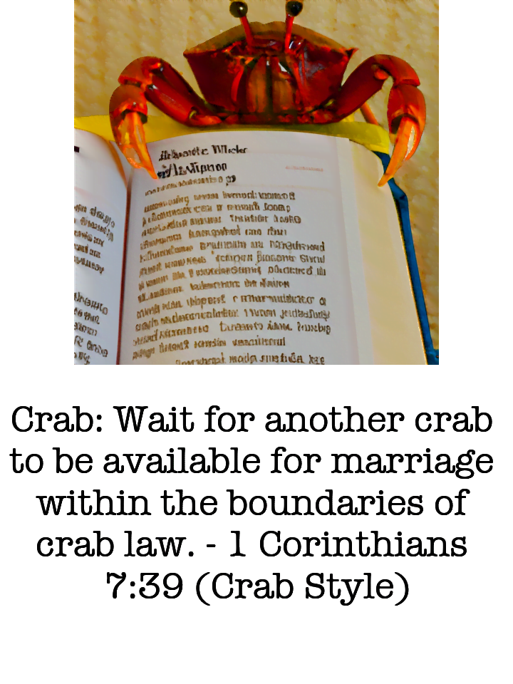 Crab: Wait for another crab to be available for marriage within the boundaries of crab law.