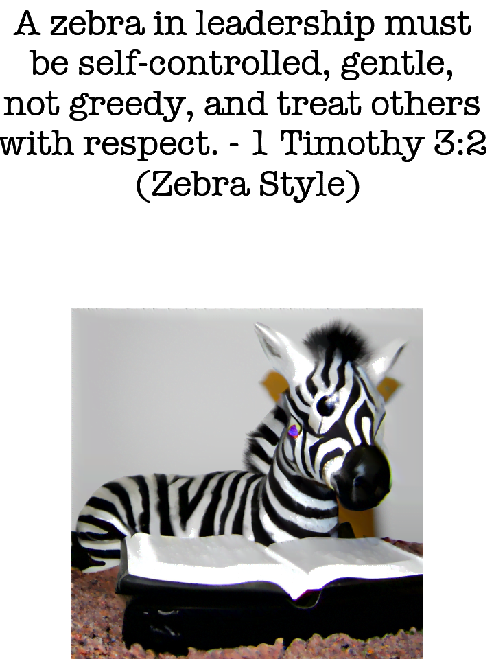 A zebra in leadership must be self-controlled, gentle, not greedy, and treat others with respect.