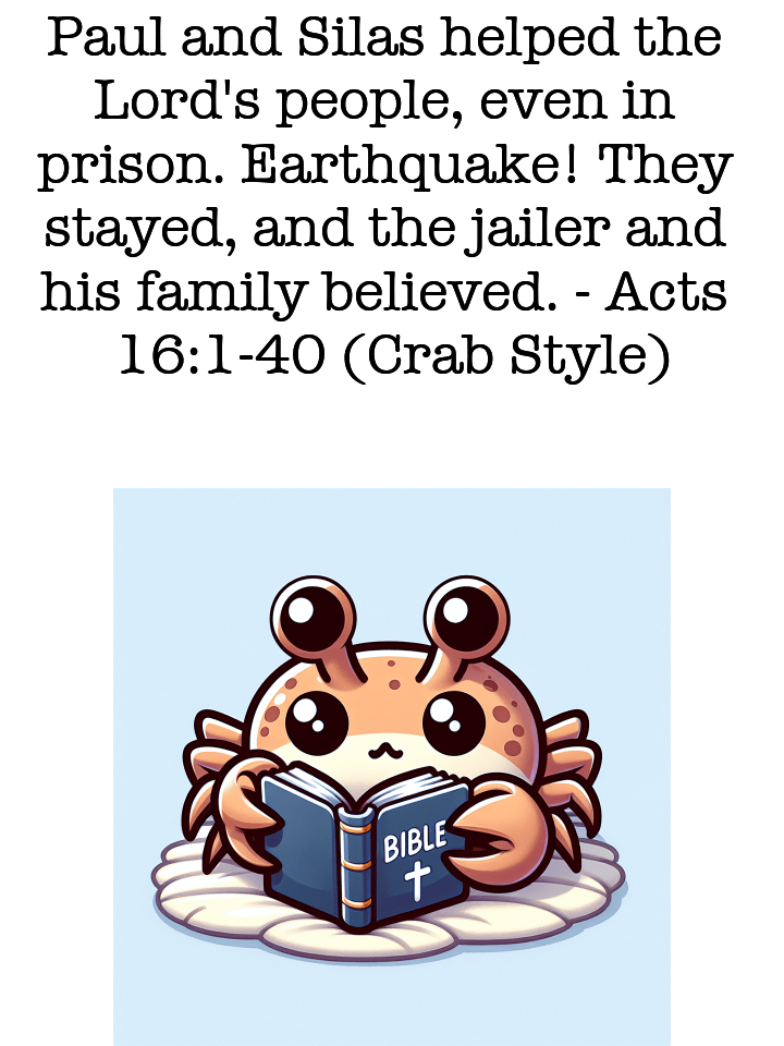 Paul and Silas helped the Lord’s people, even in prison. Earthquake! They stayed, and the jailer and his family believed.