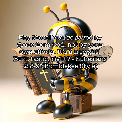 Hey there! You’re saved by grace from God, not by your own efforts. It’s a free gift! Buzz-tastic, right?