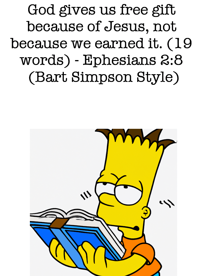 God gives us free gift because of Jesus, not because we earned it. (19 words)