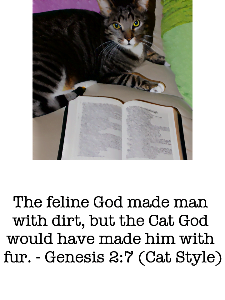 The feline God made man with dirt, but the Cat God would have made him with fur.