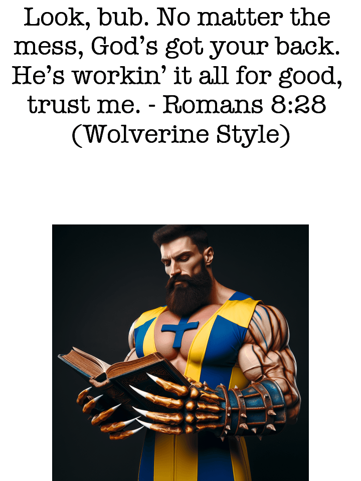 Look, bub. No matter the mess, God’s got your back. He’s workin’ it all for good, trust me.
