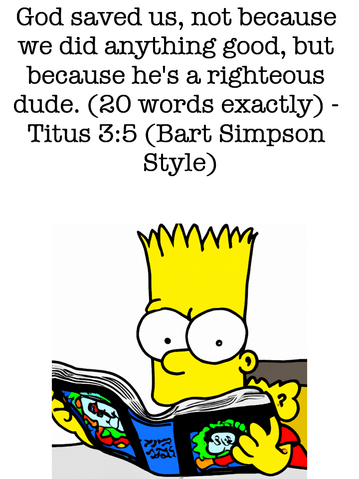 You Might Enjoy: The Animated Character Bart Simpson Gives a Summary of Philemon | The Animated Character Bart Simpson Gives a Summary of Galatians |