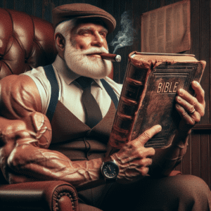 I am Winston Churchill, a man of great historical significance, and I have been called upon to share the story of the book of Revelation. This is a tale of great turmoil, chaos, and ultimately triumph, much like the trials and tribulations that I faced during my time as Prime Minister of the United Kingdom. The book of Revelation, written by the apostle John, is a revelatory vision that foretells the end times and the ultimate victory of good over evil.