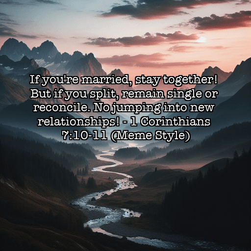 If you’re married, stay together! But if you split, remain single or reconcile. No jumping into new relationships!