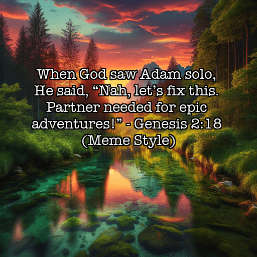 When God saw Adam solo, He said, “Nah, let’s fix this. Partner needed for epic adventures!”