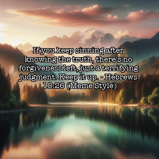 If you keep sinning after knowing the truth, there’s no forgiveness left, just a terrifying judgment. Keep it up.