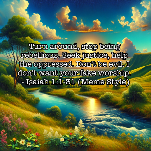 Turn around, stop being rebellious. Seek justice, help the oppressed. Don’t be evil. I don’t want your fake worship.