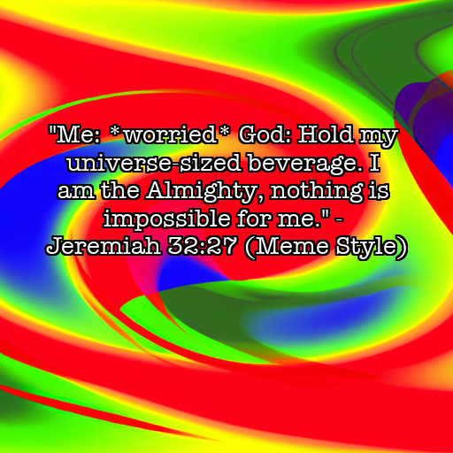 “Me: *worried* God: Hold my universe-sized beverage. I am the Almighty, nothing is impossible for me.”