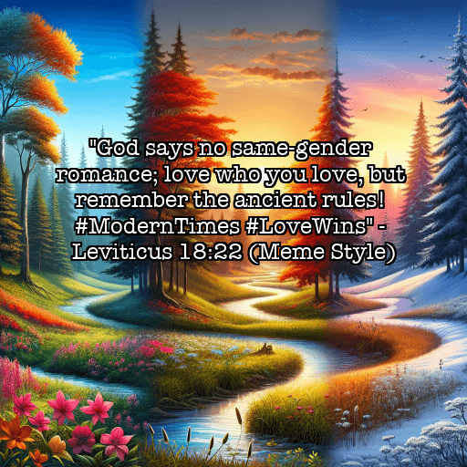 “God says no same-gender romance; love who you love, but remember the ancient rules! #ModernTimes #LoveWins”