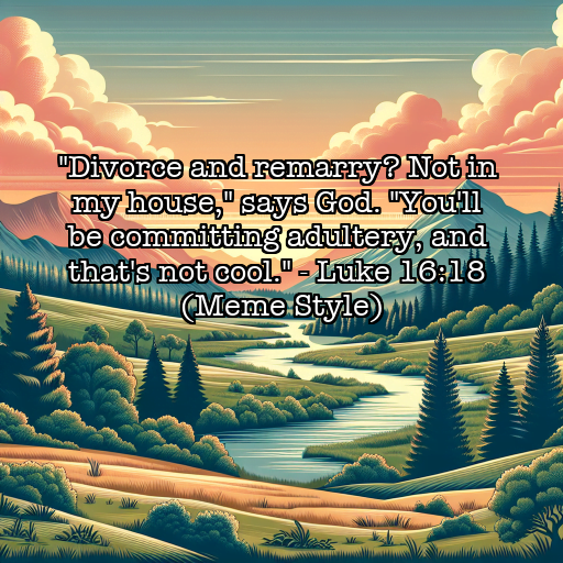 “Divorce and remarry? Not in my house,” says God. “You’ll be committing adultery, and that’s not cool.”