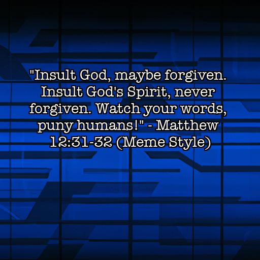 “Insult God, maybe forgiven. Insult God’s Spirit, never forgiven. Watch your words, puny humans!”
