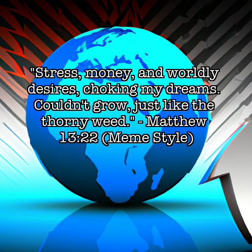 “Stress, money, and worldly desires, choking my dreams. Couldn’t grow, just like the thorny weed.”