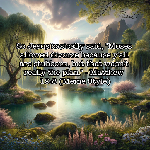 So Jesus basically said, “Moses allowed divorce because y’all are stubborn, but that wasn’t really the plan.”
