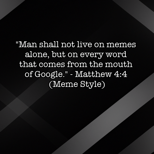 “Man shall not live on memes alone, but on every word that comes from the mouth of Google.”