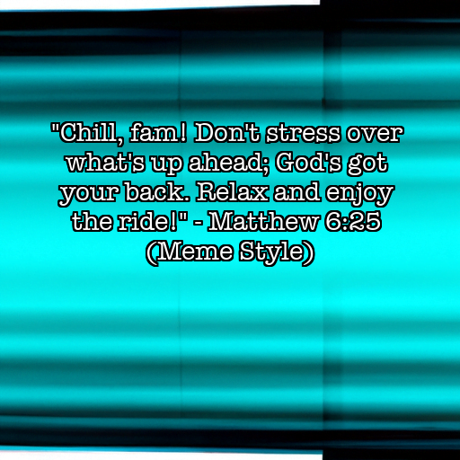“Chill, fam! Don’t stress over what’s up ahead; God’s got your back. Relax and enjoy the ride!”