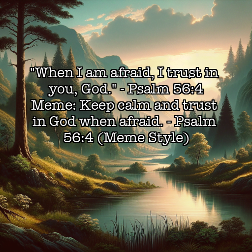 “When I am afraid, I trust in you, God.” – Psalm 56:4 Meme: Keep calm and trust in God when afraid.