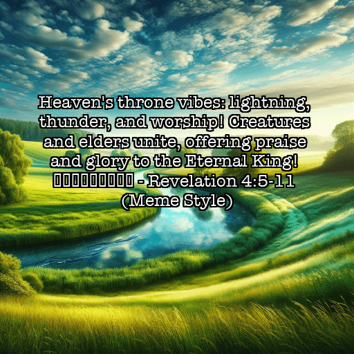 Heaven’s throne vibes: lightning, thunder, and worship! Creatures and elders unite, offering praise and glory to the Eternal King! 🎇👑✨